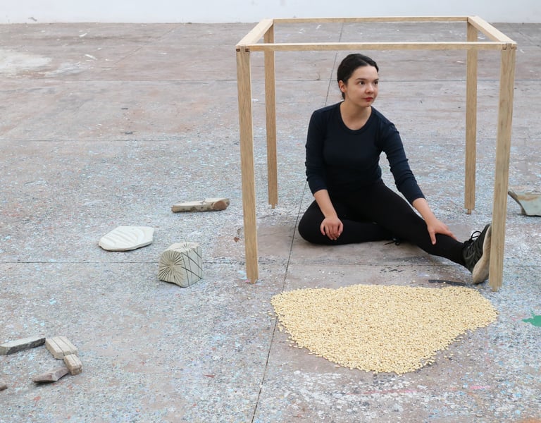 (EN) The project is based on the observation and sonic reflection on natural phenomena—particularly meteorological and volcanic processes—as the foundation for an artistic proposal linked to sustainability. The work is developed through the use of clay from Guanajuato and volcanic ash from the Paricutín volcano, exploring both their symbolic and material qualities. The research highlights volcanic ash as a biocompatible and sustainable resource capable of enhancing the properties of clay while reducing water consumption during processing. The project encourages collaboration with local communities and promotes a circular economy through innovation in the use of regional resources. Formally, it consists of sound objects inspired by ocarinas, activated either by human interaction or by wind, which together form a sound installation. Through these objects, the work reflects on the preservation of the natural sonic imagination and the possibility of “listening” to a volcano as a metaphor for environmental care. The work On the Other Side, Stromboli Sounds refers to the Paricutín volcano, its Strombolian classification, and the idea of a sound suspended in time. The project was exhibited at the 51st International Cervantino Festival in 2023 at Museo Casa Diego Rivera, and it received First Prize in the First PANERAI Competition for Contemporary Art and Sustainable Practices.